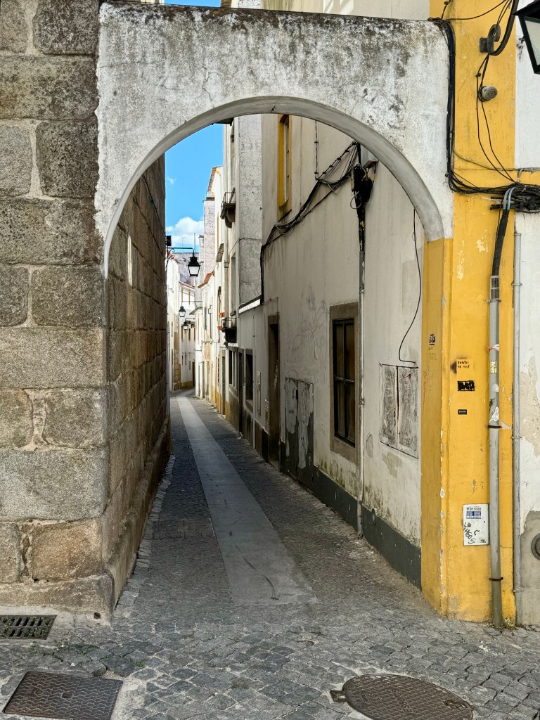 This town is Évor, Capital on this region of Portugal. With 50,000 population and many historical highlights, this promises to be an interesting walking tour – but first lunch. Our “Ride with GPS” app that was pre-programmed by Trek Travel provides dining recommendations. We choose the “Bakery Lounge” for sandwiches and drinks on the upper shaded terrace – excellent.