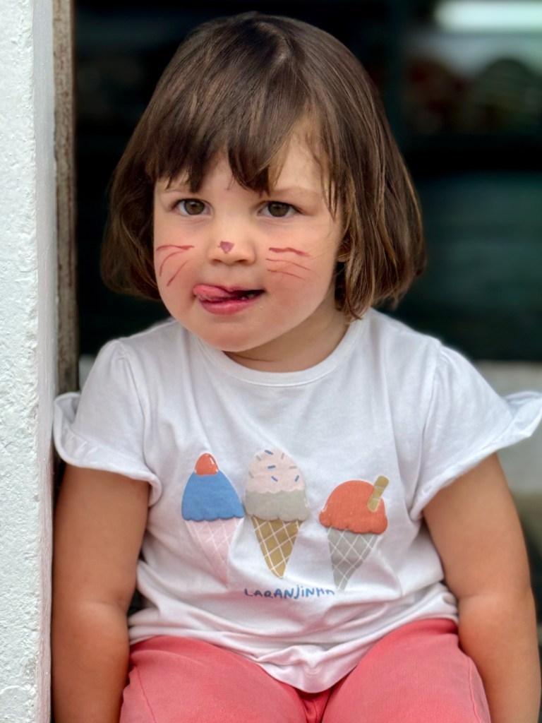 We finished the ride about noon at a place where we could see the largest man-made lake in Europe. On the other side was Spain. We walked up a final steep stairs to the village on top of the hill. We found a great small shop selling soap, Gin, and olive oil. Great fun! I photographed two young girls, the first named Madeline, a two year old from Italy.